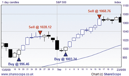 Setup to plot buy and sell markers: When you plot these on a price chart, format the data series with no lines and an 8-pt, filled-in circle marker. Green for buy, red for sell….