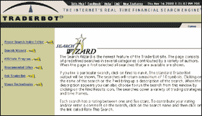 Authors contributing strategies to the Search Wizard include Harvey Baraban of Baraban Securities; Greg Morris of MurphyMorris Inc.; and directors from TradingMarkets.com. Additional contributing experts are expected to be announced shortly. TraderBot functionality includes real-time financial scans on its SUReTick database, news searches, company profiles, portfolio alerts, and its Search Wizard library of custom scans. Monthly subscriptions and free trials are available. |