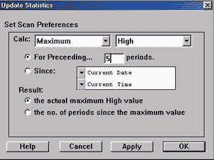 FIGURE 3: INVESTOR/RT, GOPALAKRISHNAN RANGE INDEX. Set up a scan in Investor/RT to identify the maximum high and minimum low.