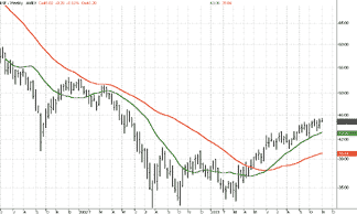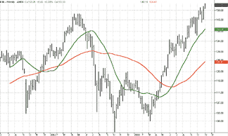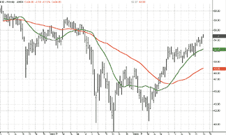 As measured by the Russell 2000 Growth Index iShare (IWO), small-cap growth stocks have been in a bull market since spring 2003 when they emerged from a bullish, "bottoming" pattern of three distinct lows. As the 20-week moving average crossed above the 50-week moving average in late spring/early summer 2003, small-cap growth stocks rallied strongly. After a short, sharp pullback in September, small-cap growth stocks resumed their bullish ways, heading for a test of the spring 2002 highs as November 2003 neared.