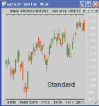 FIGURE 3: eSIGNAL, HEIKIN-ASHI. Here's a heikin-ashi candlestick chart as displayed in eSignal.