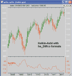 FIGURE 5: eSIGNAL, HEIKIN-ASHI. Here's the heikin-ashi DiffCO indicator displayed in eSignal.
