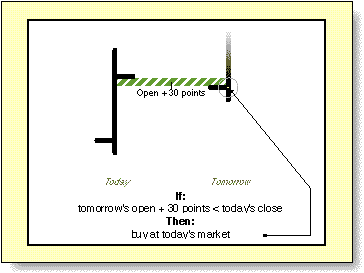 FIGURE 2: Pattern 2. If tomorrow's open plus 30 points is less than