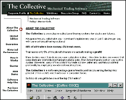The Collective contains several separate trading systems, simply named system 1, system 2, system 3, and so on. Each system is priced individually according to its performance goals, and the user can choose which systems to purchase or can purchase the entire collection. The software is fully automated and the systems are proprietary.
