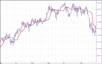 FIGURE 1: RESPONSE TIME. A median filter does well in ranges but is slow to react to dramatic price changes.