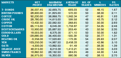 Figure 1: Applying the trend intensity index (TII). Applying the TII to these 15 markets using a 30-day parameter resulted in profitable trades.