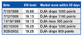 There is little chance we will see a low VIX in the near future. So far this fall the US stock market has been more volatile than ever before. It is rare to see the VIX, also known as the market's fear gauge, remain above 40% for a prolonged period of time, but as of this writing [September 2002], the VIX has been trading above 40% for nearly a month - extraordinarily high.