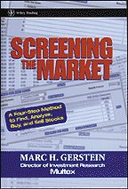 Screening The Market: A Four-Step Method To Find, Analyze, Buy And Sell Stocks (296 pages, $49.95 hardcover, 2002, ISBN 0471215597), by Marc H. Gerstein, published by John Wiley & Sons.