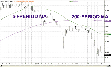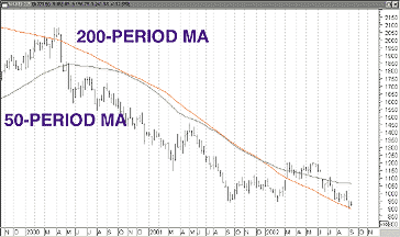 The relentlessly bearish equities markets in Japan were in full effect in 2000 and 2001, as the Nikkei 225 traded beneath both its 50- and 200-day moving averages after an initial collapse early in 2000. The first half of 2002 showed some leveling off of the two long-term moving averages, as Nikkei investors hoped that the declines from the fall of 2002 might mark a test of the previous year's summer lows.