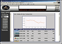 FIGURE 2: GET QUOTE. 3DStockCharts' Get Quote module features an intraday line chart as well as quotes from various ecns.The Most Active module currently configured gives the trader information on the six most active stocks on the Integrated Island/ARCA ECNs, as well as most active, biggest gainers, biggest losers, and biggest movers data from Instinet. The Integrated Island/Arca display of the six most active stocks is in minibar chart form, while Instinet's data is presented in a set of easy-to-read tables. The last module is a watchlist that is still in development as of this writing. Upon completion, the watchlist module will allow traders to make and maintain a streaming list of last trades and the best bid/ask prices. There are additional plans for customizable lists, as well as portfolio tracking.