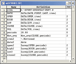 This eSignal formula is based on "The Moving Trend" by William Rafter in this issue. A sample chart is in Figure 5.