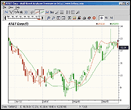 Figure 19: TECHNIFILTER PLUS, MOVING TREND. Here's a TechniFilter Plus chart showing the moving trend in red.--Clay Burch, RTR Software