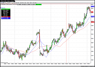 Figure 10: NEUROSHELL TRADER, MOVING TREND INDICATOR. Here's a sample NeuroShell Trader chart demonstrating William Rafter's moving trend indicator .