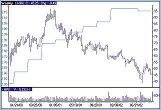 Figure 1: A PICTURE IS WORTH 1,000 DATA POINTS. Here you see a two-year, weekly chart of Merck (MRK) with quarterly earnings.