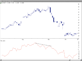 TRADERS' TIPSYou can copy these formulas and programs for easy use in your spreadsheet or analysis software. Simply "select" the desired text by highlighting as you would in any word processing program, then use your standard key command for copy or choose "copy" from the browser menu. The copied text can then be "pasted" into any open spreadsheet or other software by selecting an insertion point and executing a paste command. By toggling back and forth between an application window and the open Web page, data can be transferred with ease.