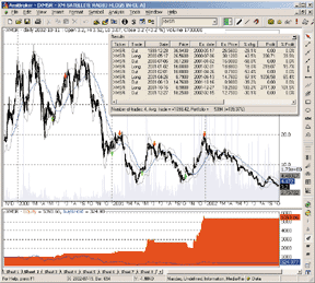 FIGURE 17: NEOTICKER, FVE SYSTEM RESULTS. You can use NeoTicker's built-in system performance viewer to review the orders, transactions, and summary of the trading system.A downloadable version of this indicator is available from the Yahoo! NeoTicker user group file area at https://groups.yahoo.com/group/neoticker/.