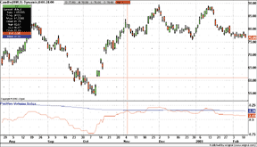 FIGURE 25: SMARTRADER, POSITIVE VOLUME INDEX. Here's a sample SmarTrader chart plotting the PVI.