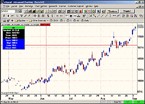 A man who charges for his trading courses once told me, "You can't trade off a 30-minute chart." But I have done just that, and I often trade off 45-minute charts and daily charts, too. Some traders trade off one-minute charts. I have discussed trading with others who use three-, seven-, 21-, 60-, and so on. Still others use weekly, monthly, and even quarterly charts. It just depends on what's right for you.