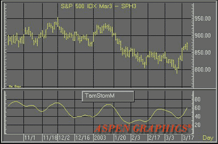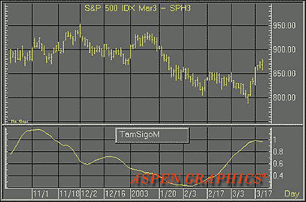 FIGURE 15: ASPEN GRAPHICS, STOCHASTIC MOMENTUM INDEX. Here is a sample plot of the study for the stochastic momentum index , _tam-stom-m.
