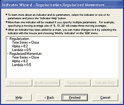 FIGURE 13: NEUROSHELL TRADER, REGULARIZATION. Use NeuroShell Trader's Indicator Wizard to add the regularization and regularized momentum indicators.