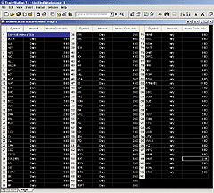 Now that we have a simple strategy (you can make yours as complex as you like), we can use TradeStation RadarScreen to generate the "library" of trades. Figure 2 shows the RadarScreen that generates simulated trading results for the 100 component stocks that make up the Standard & Poor's 100 index. Each output line contains a "line number," stock symbol, charting interval, and the number of days since a trade occurred.