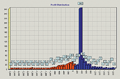 The task of programming the decision tree of possible outcomes of real trading systems can become rather ominous. Consider the profit distribution of a typical trading system, shown in Figure 5. In our implementation of the program presented here, the win/loss ratio is automatically calculated from this information, as are the probabilities of each trade.