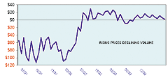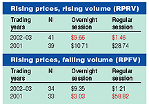 FIGURE 2: REVERSAL OF FORTUNE. In the 2002-03 period, traditional wisdom was not supported in an environment of rising prices with aggressive trading activity.