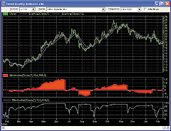 FIGURE 11: TECHNIFILTER PLUS, TREND-QUALITY INDICATOR. Here's a sample chart of the Q-indicator in TechniFilter Plus.