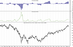 FIGURE 2: METASTOCK, TREND-QUALITY INDICATOR AND B-INDICATOR. Here are the Q-indicator and B-indicator on a chart of SPY.--William Golson