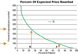 FIGURE 3: PERCENTAGE OF PRICE OBJECTIVE MET. Here you can see what percentage of 1,748 bottom patterns met or exceeded their price objectives, and by how much.