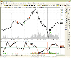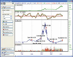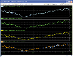 FIGURE 5: WEALTH-LAB, VOLUME FLOW INDICATOR. Wealth-Lab's standard Performance report is replete with metrics, and you can even add your own using Performance Scripts, as we have done with "Profitability."