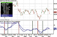 In his article "Volume Flow Indicator Performance," Markos Katsanos presents several entry/exit systems for testing the performance of the volume flow indicator, which he introduced in the June 2004 issue.
