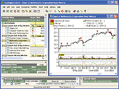FIGURE 22: ASPEN GRAPHICS, TRsV ON A CANDLESTICK CHART. This sample candlestick chart shows the TRsV on McDonald's Corp., along with the bull power indicator in the lower pane.