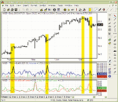 FIGURE 20: TRADE NVAIGATOR, TRSV CHART. Here's a sample Trade Navigator chart displaying the new TRsV indicator.--Michael Herman