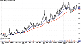 Gold's rally since its bottom in early 2001 has been a fairly steady ride ever since. Gold experienced a blow-off top late in 2002 (a few months before the blow-off top in crude oil, by the way), which turned out to be little more than a buying opportunity for the yellow metal's next ride up. In the wake of that top, gold has rallied as high as $425 in late 2003 and, even in its 2004 correction, has remained quite close to a $400 level that would have had gold bugs drooling only a few years back.