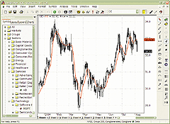 Here is an implementation of the median-average adaptive filter in eSignal. A sample chart is shown in Figure 2.