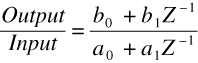 In this case, both the input and output involve only a constant term and a term having one unit of delay. By cross-multiplying and factoring, we can describe the output in terms of the input as:
