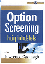 Option Screening: Finding Profitable Trades ($99 DVD, 2005, ISBN 1-59280-179-X) by Lawrence Cavanagh, published by Marketplace Books.