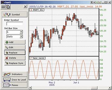 FIGURE 6: NEOTICKER, SWISS ARMY KNIFE INDICATOR. Applying the indicator to a data series in NeoTicker will return a transformation result.
