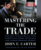 Mastering The Trade: Proven Techniques For Profiting From Intraday And Swing Trading Setups (406 pages, $55 hardcover, 2006, ISBN 0-07-145958-8) by John F. Carter, published by McGraw-Hill.