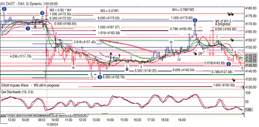 FIGURE 1: TYPICAL IMPULSE ELLIOTT PATTERN. On this five-minute chart, you can see the occurrence of Elliott wave patterns over a two-day period.