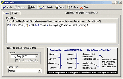TRADE NAVIGATOR/TRADESENSE: STOCHASTICS WITH LONG-TERM EMA FILTER