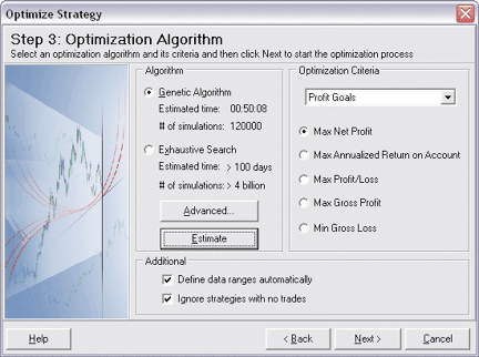 After the optimization (Figure 9), you can view and analyze the Strategy Performance Report and Trades Report on each combination of the values tested, as well as the combination's equity and drawdown curves. The best combinations can be saved as separate strategies.