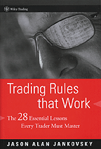 Trading Rules That Work (192 pages, $49.95 hardcover, 2006, ISBN 0-471-79216-0) by Jason Alan Jankovsky, published by John Wiley & Sons.