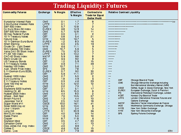 FUTURES LIQUIDITYTrading liquidity is often overlooked as a key technical measurement in the analysis and selection of commodity futures. The following explains how to read the futures liquidity chart published by Technical Analysis of STOCKS & COMMODITIES every month.