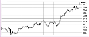 FIGURE 1: TYPICAL CONSOLIDATION PATTERN FOR A POSITION TRADE. In this chart you can see when, where, and how the stock price broke out of the consolidation pattern.Example: Figure 2 shows an example of a gap series. In today's market, gaps occur frequently after long periods of consolidation. In autumn 2006 there were many stocks that started the gap series patterns. Position traders can take advantage of a gap series, while many other styles of trading miss gap profits. The entry is made during the sideways consolidation pattern prior to the gap.