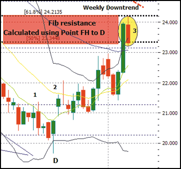 FIGURE 1: XMSR, DAILY VIEW, 4/7/06. On this chart of XMSR you can see the adjustment zone.SYNTHETIC STRADDLE