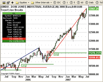 eSIGNAL: TRADING TRENDLINE BREAKS