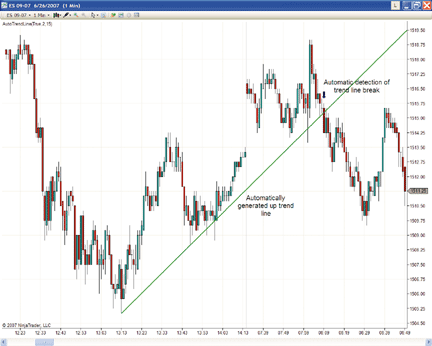We've developed an automatic trendline detection indicator based on Sylvain Vervoort's article in this issue, "Trading Trendline Breaks, Part 2." This indicator will detect and plot the prevailing trend, and will generate a visual and audio alert on a break of a trendline. (See Figure 9.) This indicator can be embedded in a NinjaScript strategy to create an automated trading system.