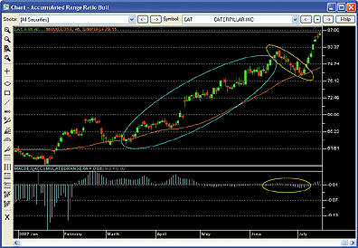 eSIGNAL: Accumulated Range Ratio Indicator